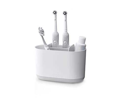 Joseph Joseph Duo Löstagbar tandborsthållare, för manuell och elektriska tandborstar, badrumsorganisatör, vit, stor