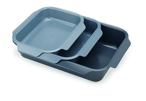 Joseph Joseph Nest Set med 3 Ugnsform, rostningsbricka med lutande handtag, Kolstål, Icke-klibbig, organisering köksförvaring, 41 x 30 x 9,6 cm, Blå