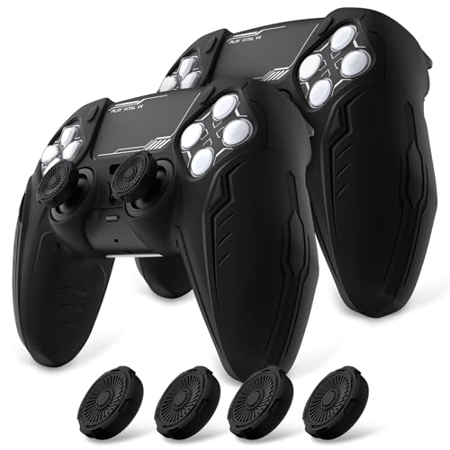 PlayVital 2st Protective Shell Skin Case Cover för ps5 Controller Silicone Grip Skin med Joystick Cap Analog Stick för ps5,Kompatibel med ps5 Official Charging Dock-Svart(CyberMech Edition)