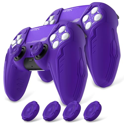 PlayVital 2st Protective Shell Skin Case Cover för ps5 Controller Silicone Grip Skin med Joystick Cap Analog Stick för ps5,Kompatibel med ps5 Official Charging Dock-Lila(CyberMech Edition)