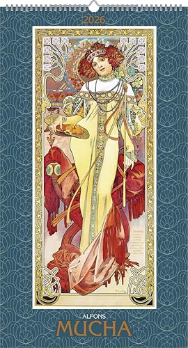 Alfons Mucha 2026 - Bild-Kalender 33x60 cm - Kunstkalender - mit stilvollem Glitzereffekt - Jugendstil - Wandkalender - Alpha Edition