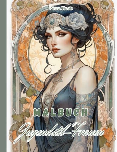 Malbuch Jugendstil-Frauen: XXL Graustufen-Ausmalbuch, 46 Motive, 97 Seiten, einseitig bedruckt mit schwarzer Rückseite, Format 8,5 x 11 Zoll (entspricht etwa DIN-A4)