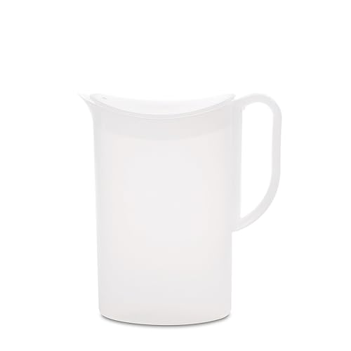 Juwacoo 2 stycken 1 l vattenkaraff plast med lock, karaff 1 l vattenkanna med hällpip, juicekanna iste kanna, återanvändbar vattenflaska för vatten mjö te juice drycker vin