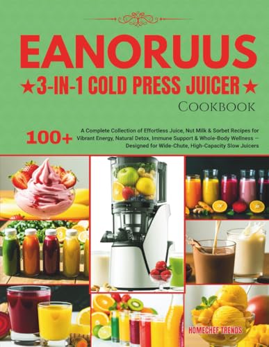 EANORUUS 3-IN-1 COLD PRESS JUICER COOKBOOK: A Complete Collection of Effortless Juice, Nut Milk & Sorbet Recipes for Vibrant Energy, Natural Detox, ... for Wide-Chute, High-Capacity Slow Juicers