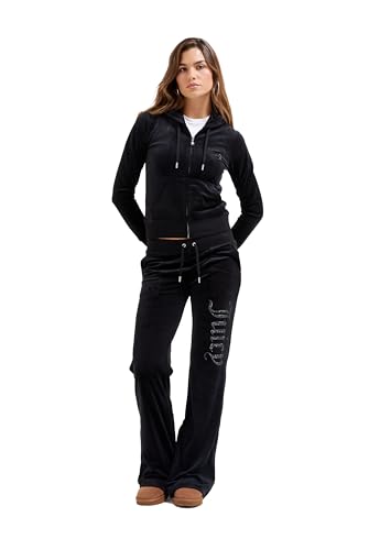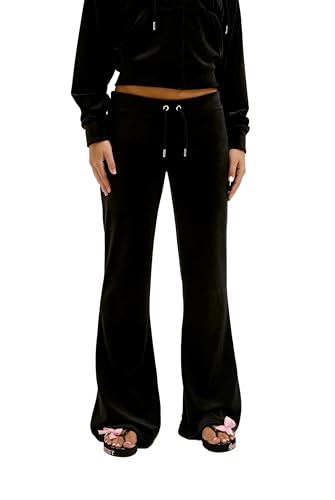 Juicy Couture dam Crystal Lisa Low Rise W. Byxor, träningsbyxor för sport, fritid, fitness med dragsko av velour V. Färger lediga byxor, svart, M