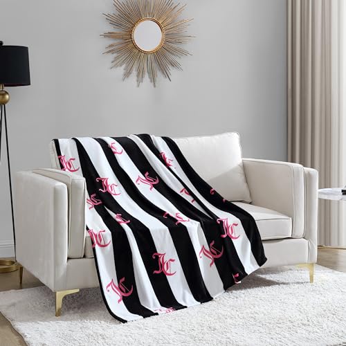 Juicy Couture Cabana plysch svart randig 127 cm x 178 cm luddig filt – lyxig mikrofiberplysch filt för ultimat komfort och mysig värme