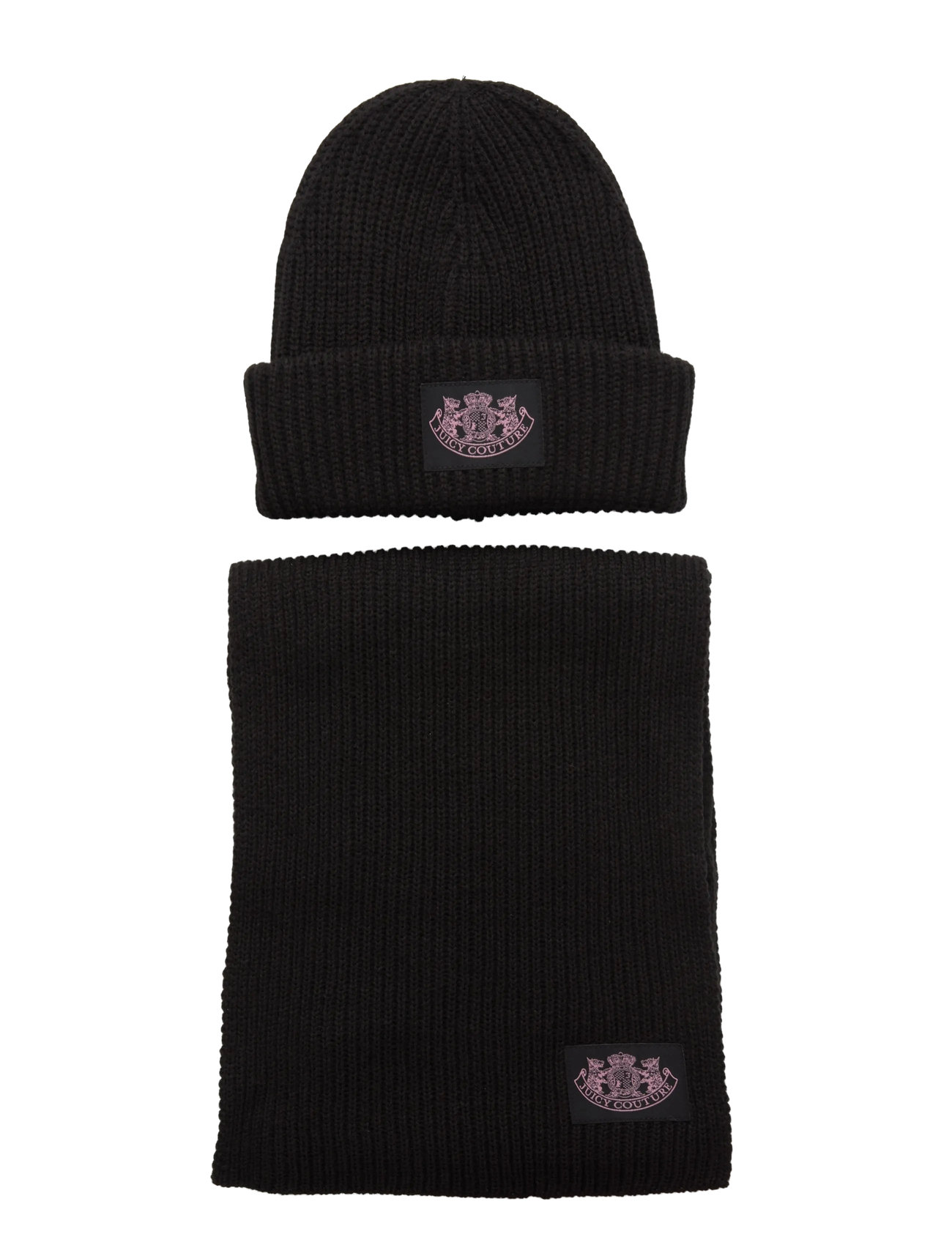 Juicy Couture Cheetah Crest Scarf / Beanie Set Svart