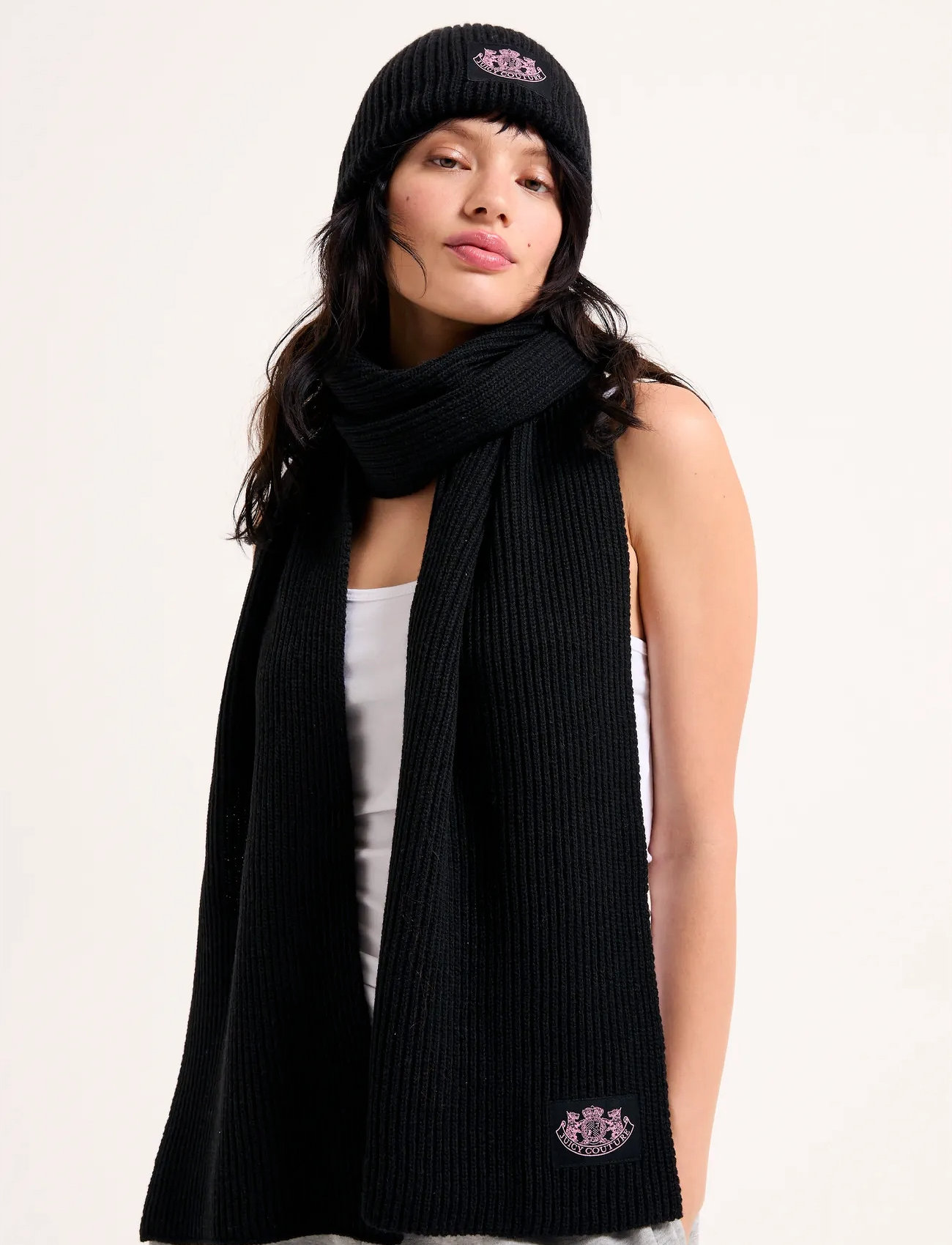 Juicy Couture Cheetah Crest Scarf / Beanie Set - Black - ONE SIZE