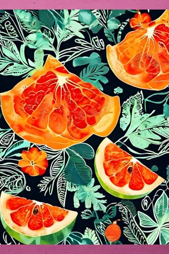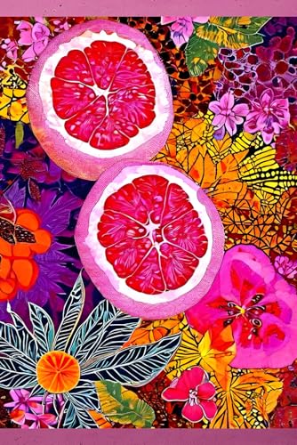 JUICY FRUIT GRAPEFRUIT Tropical Citrus-Botanical Floral Garden Kaleidoscope Art-JOURNAL NOTEBOOK DIARY RECIPE BLANK BOOK-Flower Artist Women Teen Girl ... SCHOOL SUPPLY֎College University