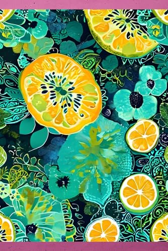 JUICY FRUIT LEMON LAVENDER Tropical Citrus-Botanical Floral Garden Kaleidoscope Art-JOURNAL NOTEBOOK DIARY RECIPE BLANK BOOK-Flower Artist Women Teen ... SCHOOL SUPPLY֎College University