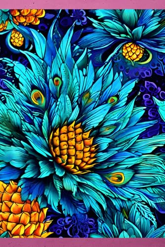 JUICY FRUIT PINEAPPLE Tropical Exotic-Botanical Floral Garden Kaleidoscope Art-JOURNAL NOTEBOOK DIARY RECIPE BLANK BOOK-Flower Artist Women Teen Girl ... SCHOOL SUPPLY֎College Ivy University