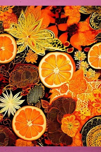 JUICY FRUIT ORANGE SPICE Tropical Citrus-Botanical Floral Garden Kaleidoscope Art-JOURNAL NOTEBOOK DIARY RECIPE BLANK BOOK-Flower Artist Women Teen ... SCHOOL SUPPLY֎College University