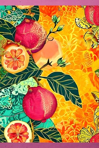 JUICY FRUIT POMEGRANATE Tropical Exotic-Botanical Floral Garden Kaleidoscope Art-JOURNAL NOTEBOOK DIARY RECIPE BLANK BOOK-Flower Artist Women Teen ... SCHOOL SUPPLY֎College University