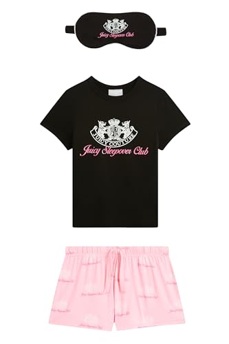 Juicy Couture Damer Sleepover Club pyjamas-set topp och shorts pyjamas sovset olika Färgpyjamasset, svart/juicy pink, S, Svart/juicy rosa, S
