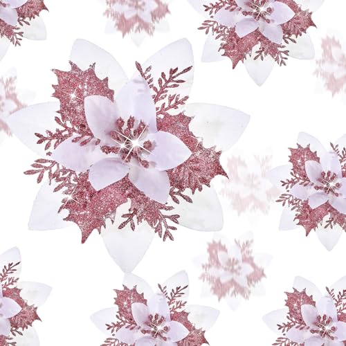 GWHOLE 21 stycken julblommor julgransdekorationer blomma konstgjord blomma glitter julgransprydnad champagne jul