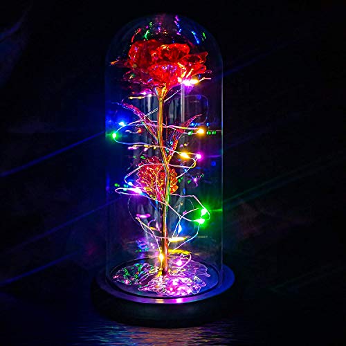 QUELIEN Skönheten och odjuret ros, galax blomma ros gåva till flickvän, glasblomma rosor, unika gåvor för kvinnor, jul, födelsedag, tacksägelse, alla hjärtans dag, årsdag (röd)