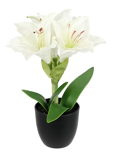 Konstgjord amaryllis i kruka 28 cm blomma julblomma sidenblomma juldekoration vinterblomma blomstrande arrangemang arrangemang i kruka växter jul konstgjorda blommor konstgjorda växter, vit