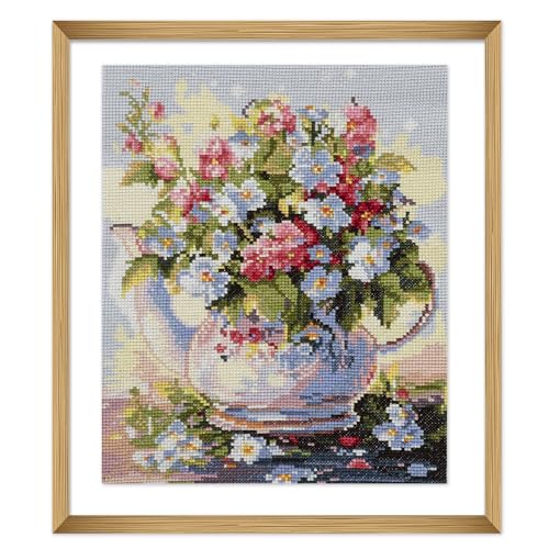 Trimits Tryckta korsstygnskit - Tryckt broderihantverk för vuxna nybörjare barn, jul, presenter, väggkonst, blomma
