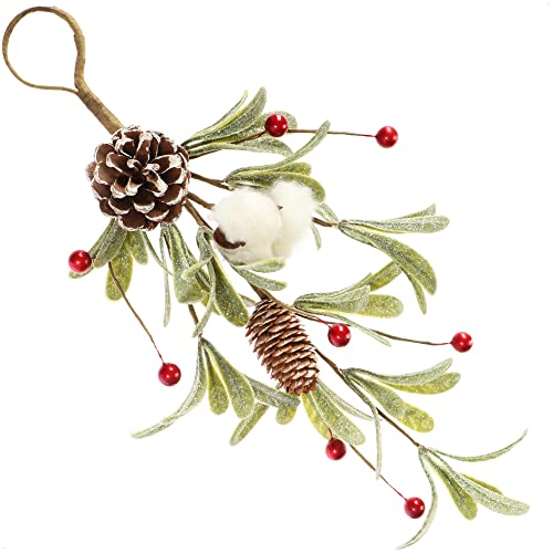 Com-Four® Hängande Dekoration för Jul - Dörr- och Väggdekoration för Upphängning (32cm - Röda Bär/Vit Blomma)
