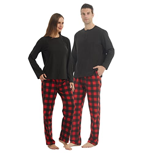 YUSHOW Matchande pyjamas par jul dam pyjamas set termisk skjorta och rutiga byxor matchande pyjamasset svart