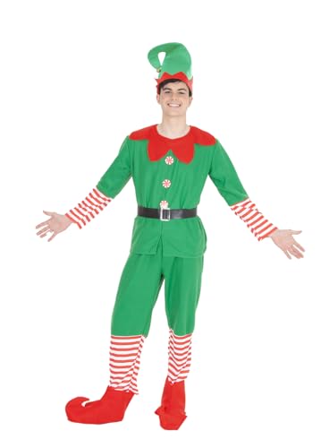 Rubies Elf Man Kostym för män, tröja med byxor, bälte, kängor och mössa, älva, julälvor för jul, evenemang, fester, cosplay