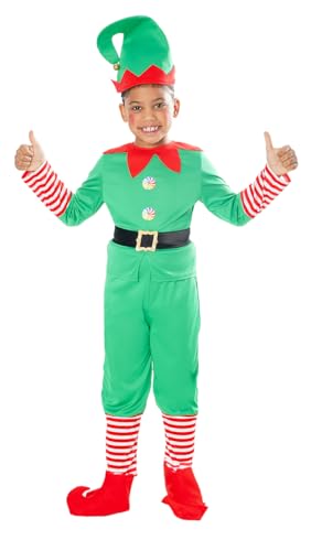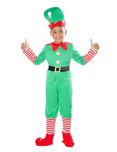 Rubies Julälvdräkt för pojkar, jumper med byxor, bälte, kängor och mössa, till jul, älva, skolfunktioner, jultomten (storlek XS, 5–6 år)