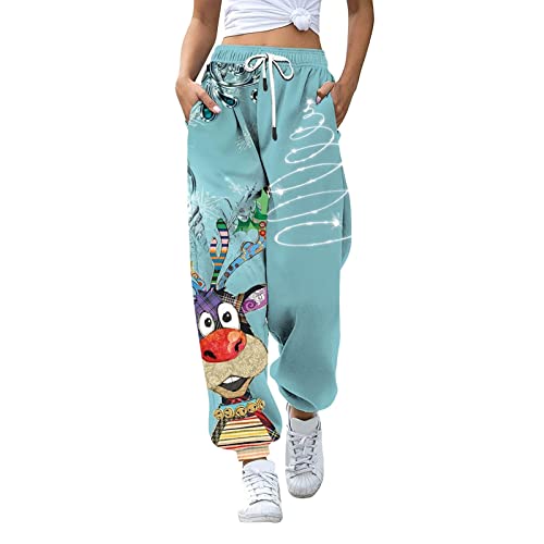 Hkcnichi 3D joggingbyxor för kvinnor byxor jul grafisk rolig svettbyxa plusstorlek sport trackleggings trumma blå medium