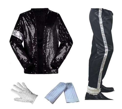 Shuanghao barn vuxna kostymer jacka + byxor + strumpor + glove (set om 4) jul halloween cosplay fester danser retro punk män kvinnor pojkar flickor kläder svart, svart, 150-160