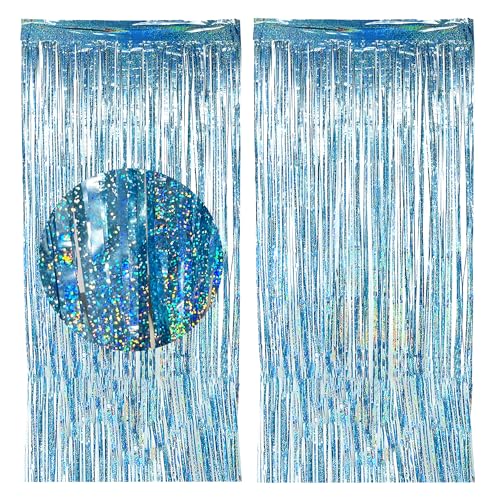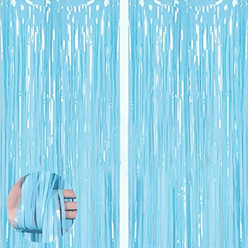 2 st 1 m x 2 m Macaron blå folie gardin dekoration glitter folie frans gardiner streamer bakgrund för födelsedag examen bröllop förlovning möhippa jul, förlovningsbal dekoration
