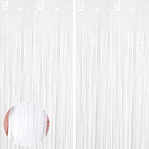 2 st 1 m x 2 m vit folie gardin dekoration glitter folie frans gardiner streamer bakgrund för födelsedag examen bröllop förlovning möhippa jul, förlovningsbal dekoration