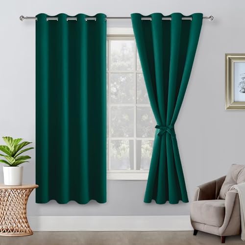 DONREN jul, mörkläggning, värmeisolerande fönsterpanelgardiner för sovrum, mörkläggning fickstång, gardiner för vardagsrum (107 x 213 cm lång, 2 paneler), smaragdgrön,