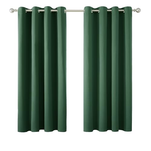 Deconovo Termo-mörkläggningsgardiner, kallisolerande, gardiner för sovrum, vuxna, modern design med öljetter, 117 x 160 cm (bredd x höjd), jul, grangrön, 2 stycken