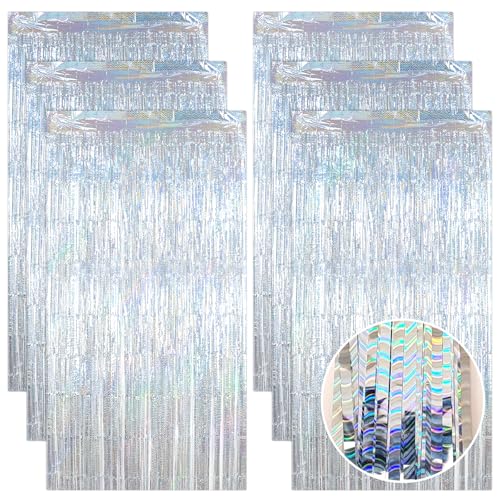 QEEYON 6 st 1,0 m x 2,0 m silver glitter gardin, folie fransar gardiner glitter metalliska serpentiner fest glitter gardin bakgrundsdekorationer för bröllop examen födelsedag jul fest fest