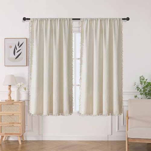 Joydeco jul beige boho linnegardiner för sovrum vardagsrum, bondgårdsgardiner 160 cm längd 2 paneler burg, ljusfiltrering vardagsrumsgardiner, lantligt rustikt linne genomskinliga gardiner