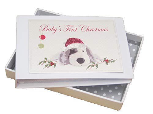 vita bomullskort 1PT bebisens första jul underbar valp hund fotoalbum