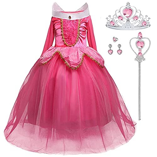 LiUiMiY Prinsessa utklädningsdräkt för flickor, halloween, karneval, jul, cosplay, klänning med tillbehör, Rosa, 5-6 År