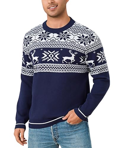 Jahetuul Jultröja herr rund hals jultröja herr mjuk och mysig långärmad tröja herr vinter jul renar tröjor jul elegant, Marinblå, M