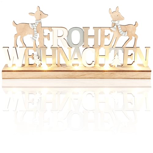COM-FOUR® LED dekorativt stativ av trä - upplysta bokstäver på träbotten - dekorativa bokstäver att lägga ner till jul - stämningsljus med timer (Renar - grå)