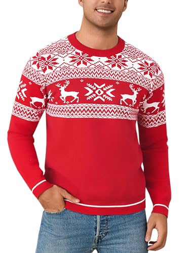 Jahetuul Jultröja herr rund hals jultröja herr mjuk och mysig långärmad tröja herr vinter jul renar tröjor jul elegant, Röd, S