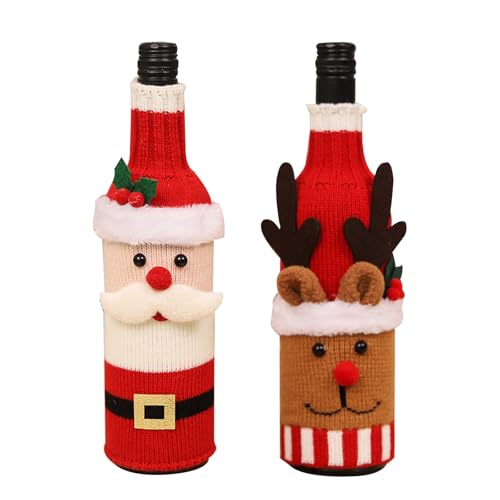 KASESSS Flaskor dekoration jul – tecknad flaskförpackning, stickad vinflaskor förpackning, kreativ flaskbeläggning, rolig flaskdekoration