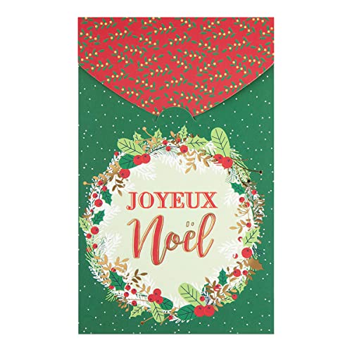 Draeger Paris | Grön "Happy Christmas" gratulationskort | julkrans | julafton | sent på året bra fester | Hot Gold finish | 10,5 x 17 cm | Tillverkad i England | kuvert ingår | FSC-papper