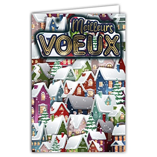 Afie 61-6016 kort med kuvert och limning i blank guld text Vill du ha ett gott nytt år visa upp sina bästa löften under snö granar upplysta fönster på julafton
