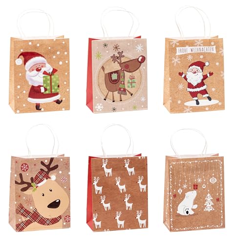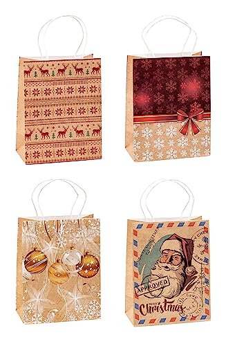 TSI presentpåsar av kraftpapper julafton, 12-pack, storlek: medium (H x B x D 23 x 18 x 10 cm), Art. Nr 88011