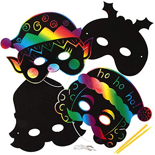 Baker Ross AX561 Jul repor konst masker för utklädning lek – paket med 8, magisk skrapkonst och hantverkskit för barn julafton aktiviteter