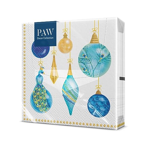 PAW – servetter 3-lager (33 x 33 cm) I 20 stycken I perfekt för jul, vinter, semester I julafton vintertid bordsdekoration I vinterpappersservetter – påfågelkollektion I Peacock Collection