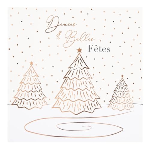 Draeger Paris | gratulationskort mjuk gnista och vackra fester | sent på året, julafton, bästa hälsningar | julgranar | 14,5 x 14,5 cm | tillverkad i England | kuvert ingår | FSC-papper