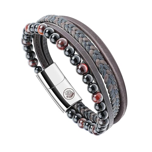 Casisto.J läderarmband män armband svart med magnetlås, natursten flätad äkta läder armband för män på fars dag födelsedag julafton dag, 21, Rostfritt stål