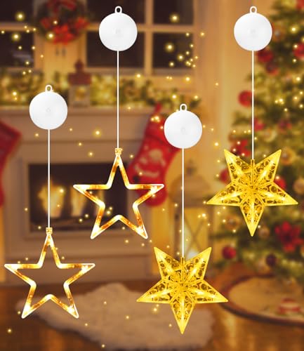 SOBEAU 4 st julbelysning fönster, LED stjärnor juldekoration, inomhus batteri gardin ljus fönster, varm vit julstjärna juldekoration för sovrum festival fest