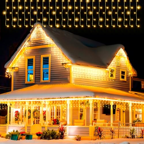 Quntis Ice Rain String Lights Utomhus 10m 400 LED, IP44 Ljusridå Fönster Eldriven, Icicle Julbelysning Inomhus Varmvit, Timer 8 lägen, Expanderbar Juldekoration för Balkong Terrass