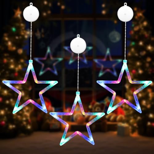 Anmossi LED Stjärnor Julbelysning,3 Stycken Juldekoration,10 LED Ljusgardiner,Batteridriven,Färg,LED Stjärnor Juldekoration Fönster för Inomhus och Utomhus Julfönster Balkong Fest Bröllop